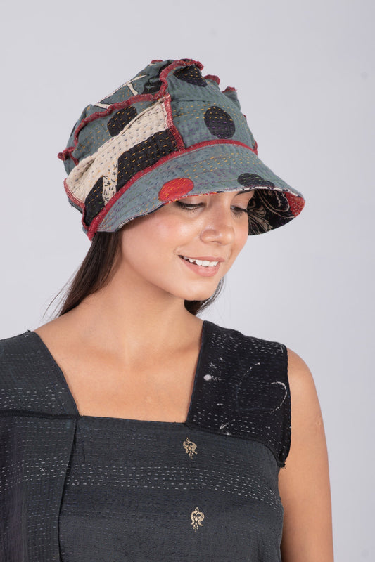 DOT & PAISLEY KANTHA PATCHWORK HAT - dp4880-nvy -