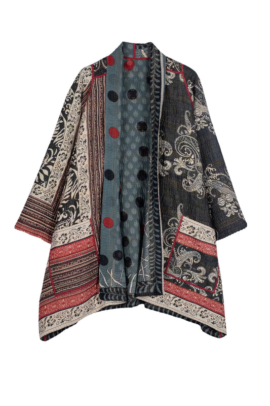 DESERT WAVES KANTHA KIMONO LONG JKT - dw2005-blu -