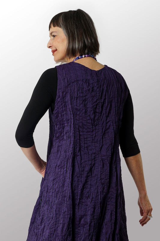 DYED COTTON SILK HEAVY VOILE RANDOM TUCK V-NECK BALLOON DRESS - dr1451-prp -
