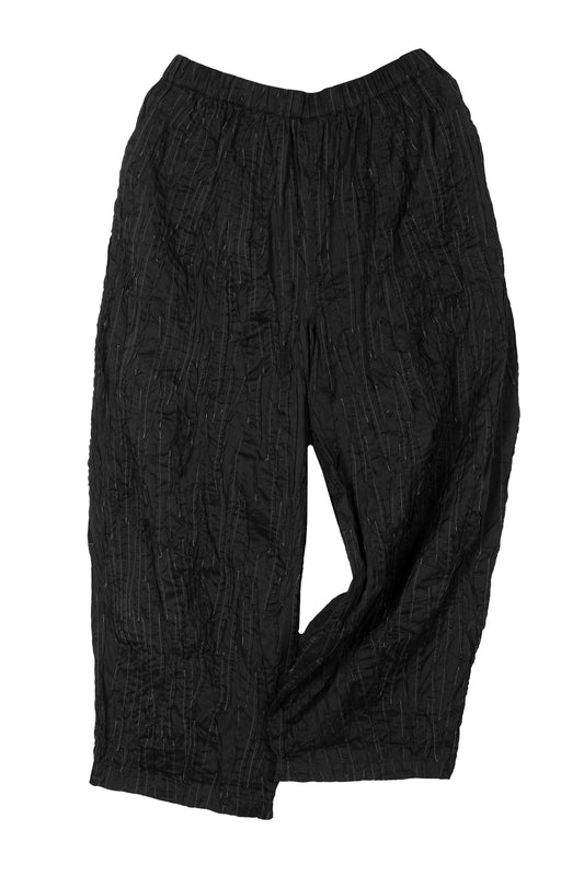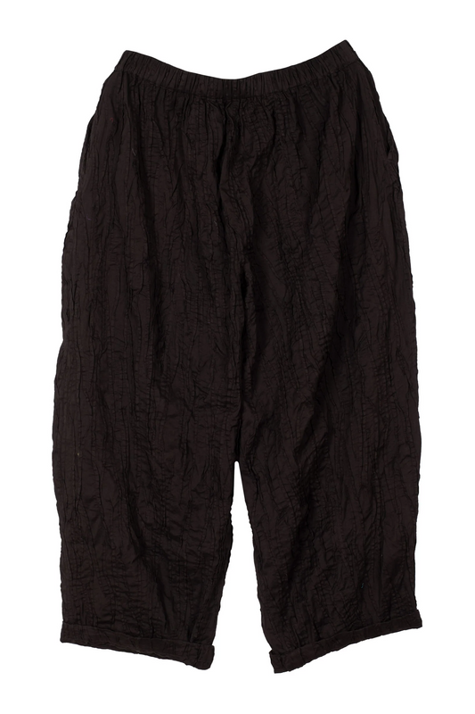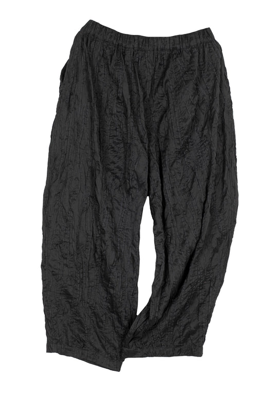 DYED COTTON SILK HEAVY VOILE RANDOM TUCK BARREL PANTS - dr1641-blk -