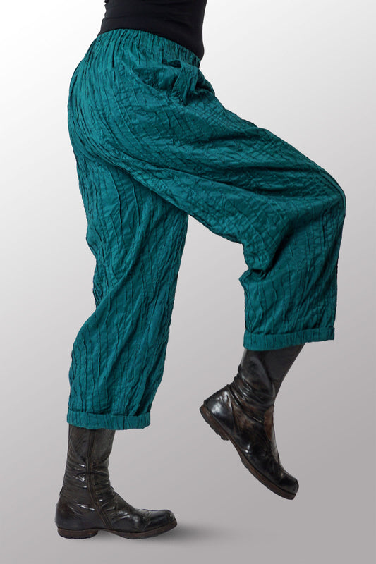 DYED COTTON SILK HEAVY VOILE RANDOM TUCK BARREL PANTS - dr1641-grn -