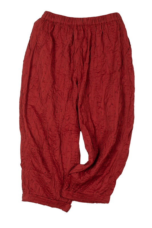 DYED COTTON SILK HEAVY VOILE RANDOM TUCK BARREL PANTS - dr1641-org -