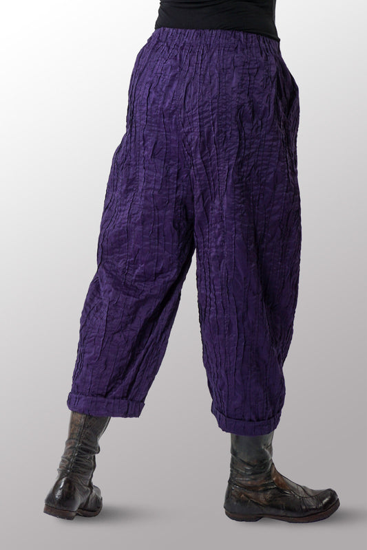 DYED COTTON SILK HEAVY VOILE RANDOM TUCK BARREL PANTS - dr1641-prp -