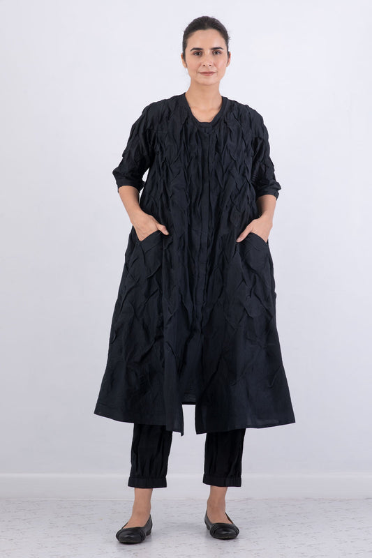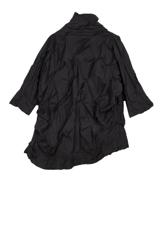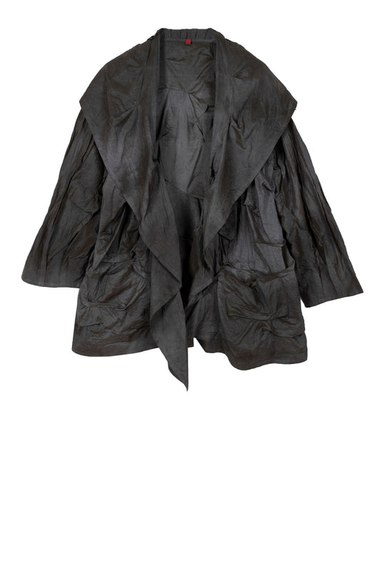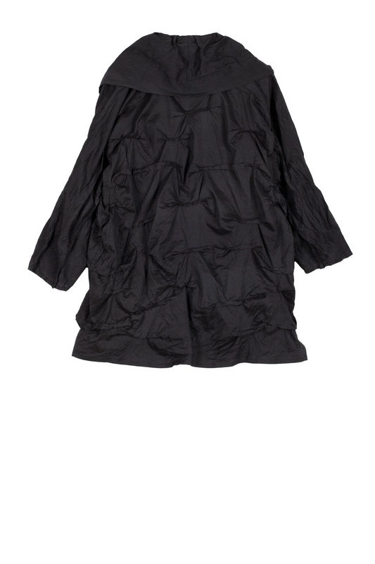 DYED COTTON SILK HEAVY VOILE WAVY TUCK COCOON JACKET - dh1063-blk -
