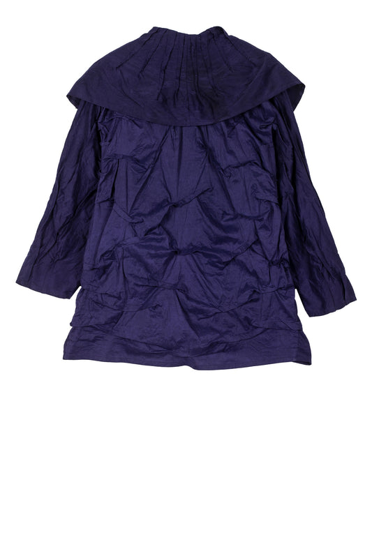 DYED COTTON SILK HEAVY VOILE WAVY TUCK COCOON JACKET - dh1063-nvy -