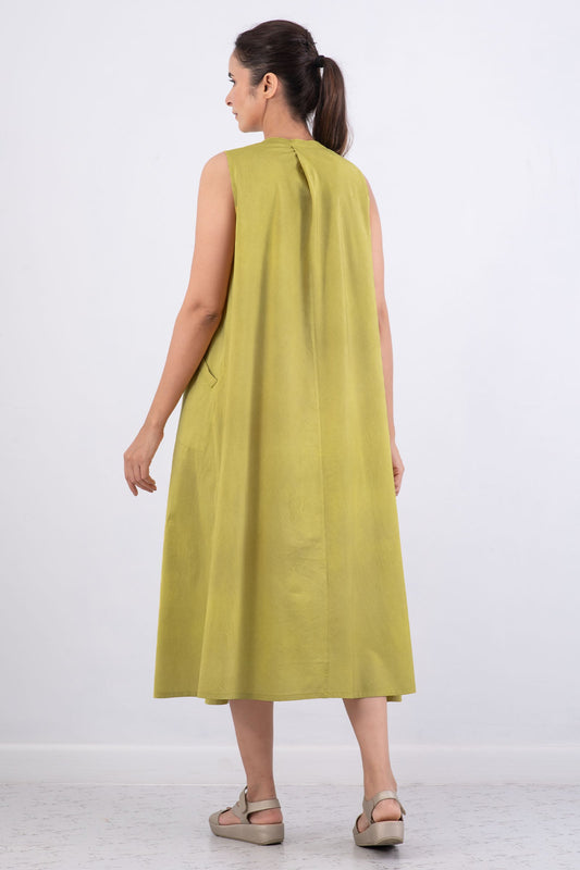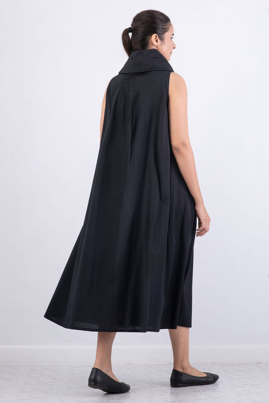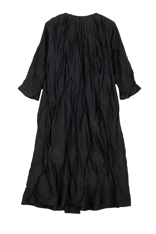 DYED COTTON SILK HEAVY VOILE WAVY TUCK A-LINE DRESS - dh1453-blk -