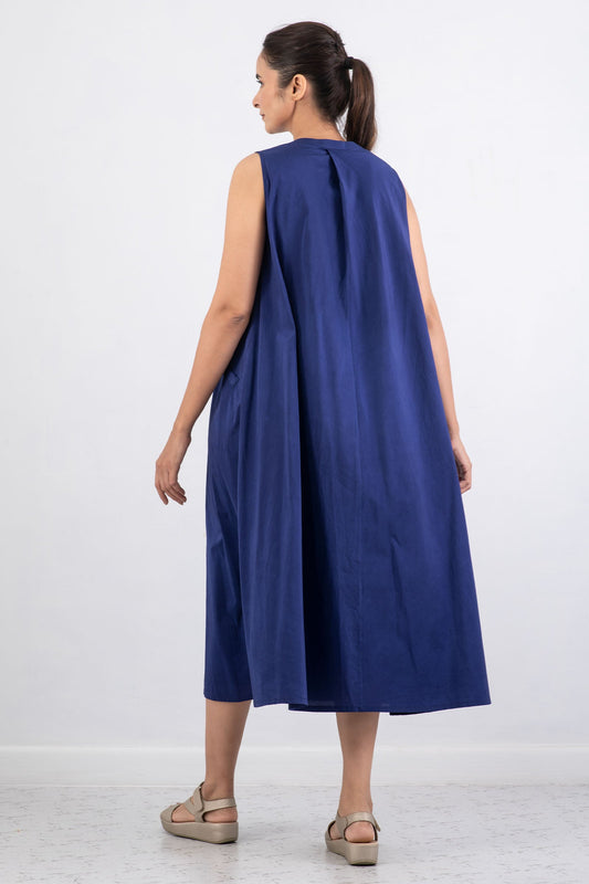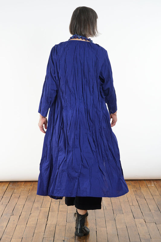 DYED COTTON SILK HEAVY VOILE WAVY TUCK CROPPED SLV. DRESS - dh1434-blu -