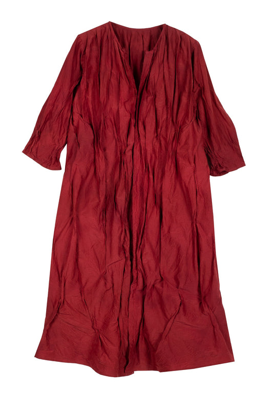 DYED COTTON SILK HEAVY VOILE WAVY TUCK CROPPED SLV. DRESS - dh1434-red -