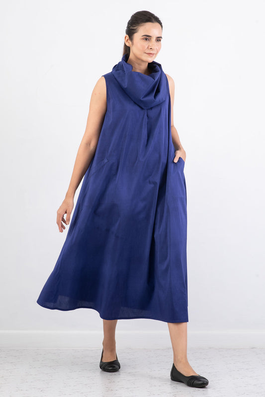 DYED COTTON SILK HEAVY VOILE WAVY COWL NECK MAXI DRESS - dh1438-blu -