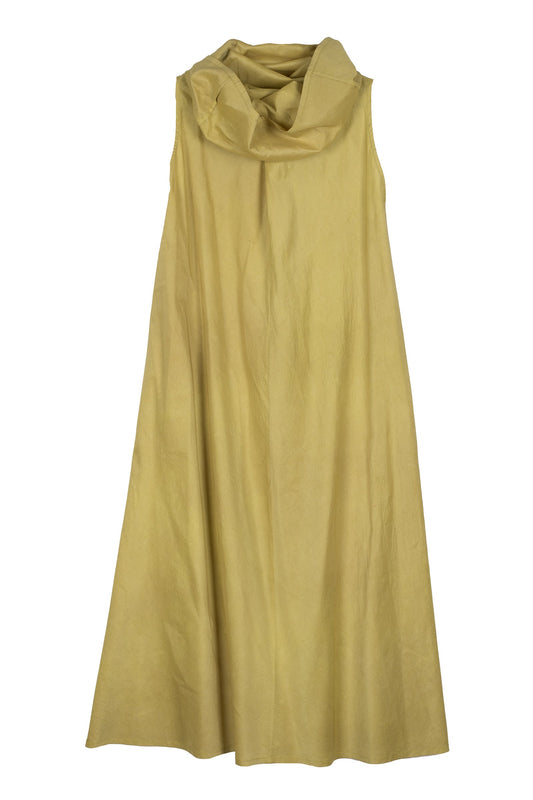DYED COTTON SILK HEAVY VOILE WAVY COWL NECK MAXI DRESS - dh1438-cha -
