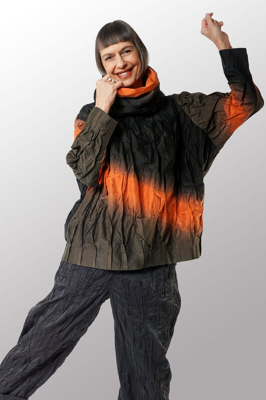 DYED COTTON SILK HEAVY VOILE WAVY TUCK HIGH NECK RAGLAN TOP - dh1581-sbk -
