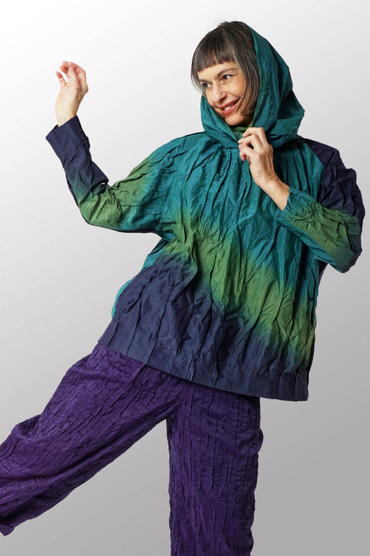 DYED COTTON SILK HEAVY VOILE WAVY TUCK COCOON JACKET - dh1063-blu -