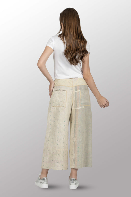 BBK SOLID KANTHA MID RISE WIDE LEG PANTS - bl-bbs4665-ivy -