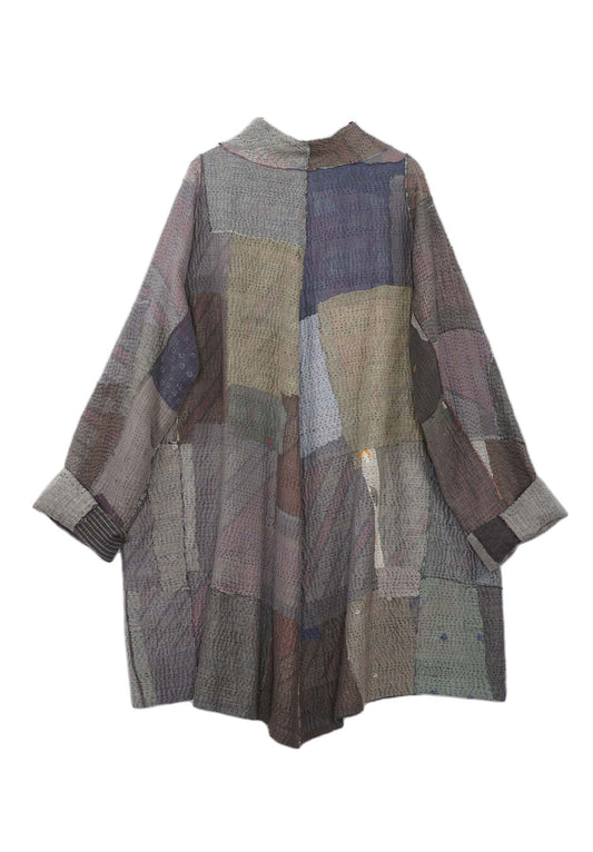 FRAYED PATCH KANTHA FUNNEL COLLAR COAT - fi4312-gry -