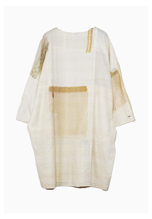 FRAYED PATCH KANTHA DOLMAN SLV. DRESS - fi2410-ivy -