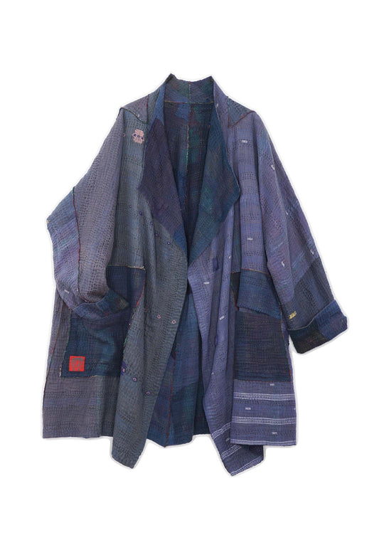 FRAYED PATCH KANTHA CIRCULAR LONG JKT - fi2009-ivy -