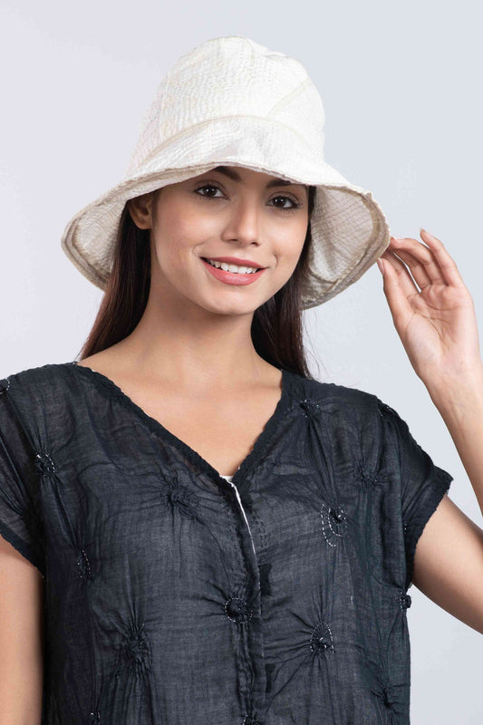 FRAYED PATCH KANTHA CIRCULAR CUT BRIM HAT - fi4882-glk -