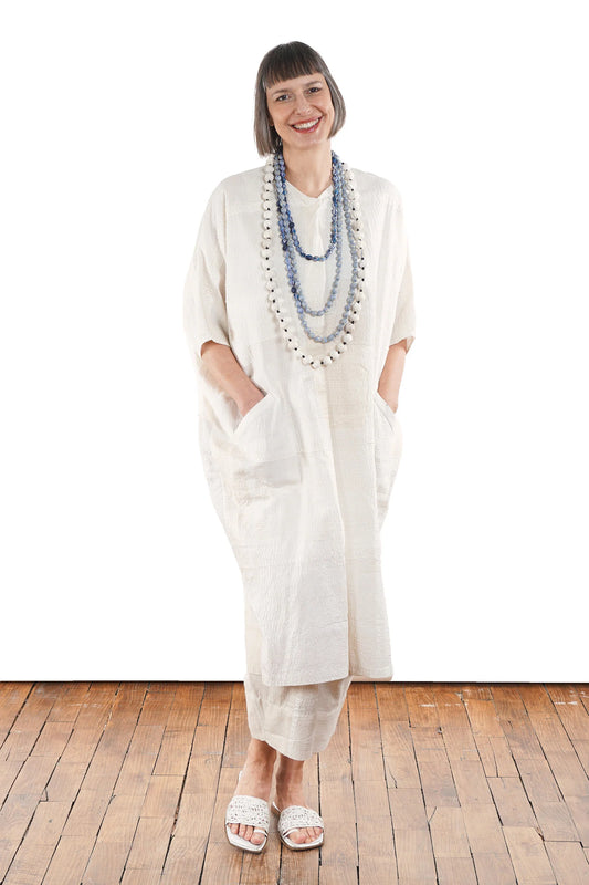 FRAYED PATCH KANTHA DOLMAN MAXI - fi2440-ivy -