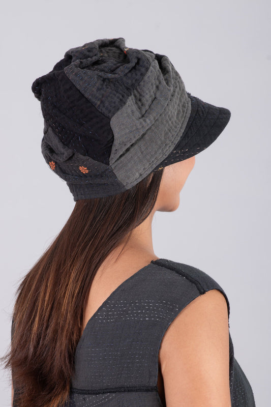 FRAYED PATCH KANTHA HALF BRIM HAT - fi4881-blk -