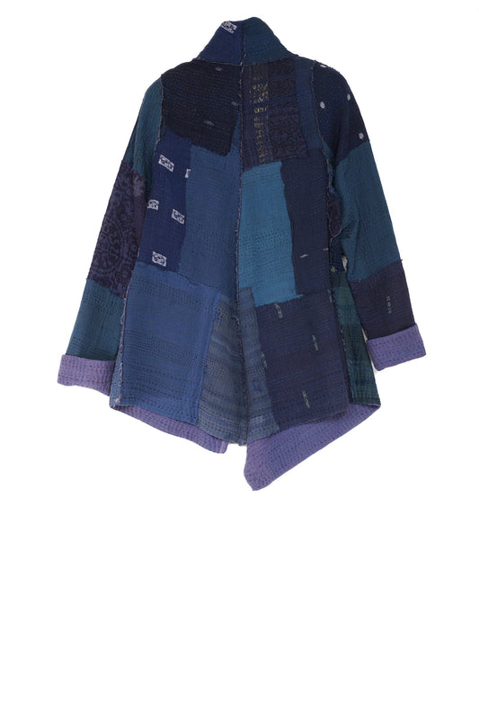 FRAYED PATCH KANTHA DRAPE COLLAR JKT - fi4037-nvy -