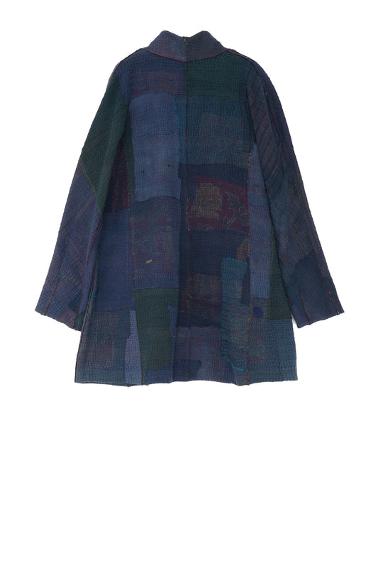 FRAYED PATCH KANTHA FUNNEL COLLAR COAT - fi4312-nvy -