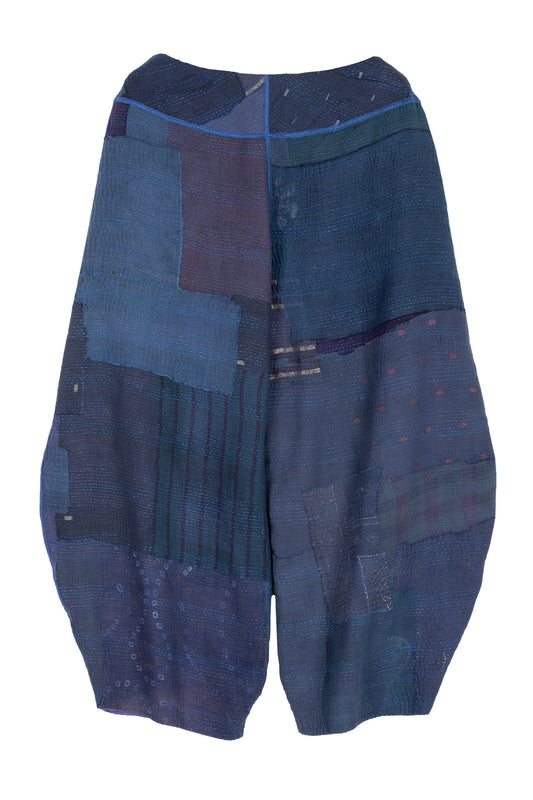 FRAYED PATCH KANTHA HAREM PANTS - fi2605-nvy -