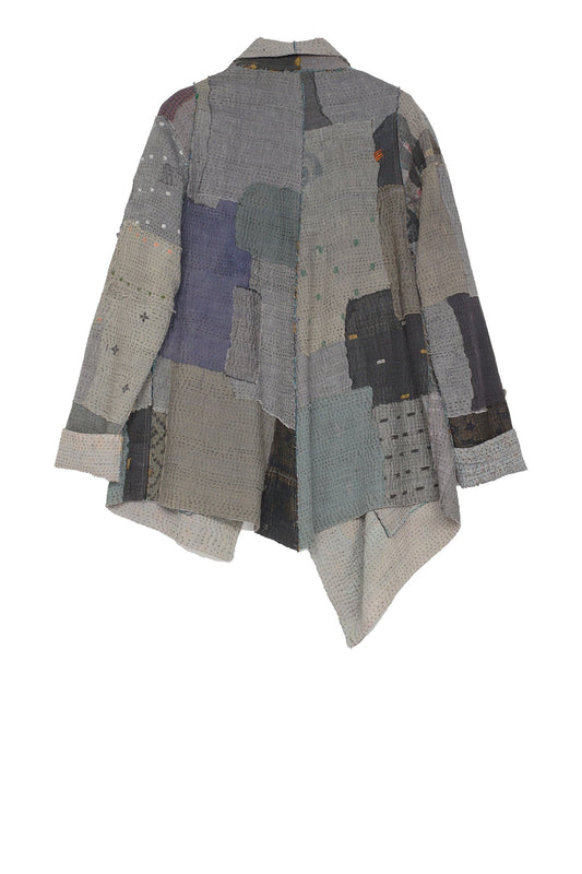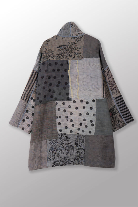 FRAYED PATCH KANTHA HAORI JACKET - fi4068-gry -