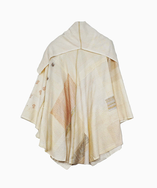 FRAYED PATCH KANTHA COWL NECK PONCHO - fi4061-glk -