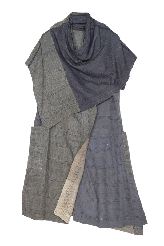FRAYED PATCH KANTHA COWL NECK LONG CAPE - fi4842-gry -