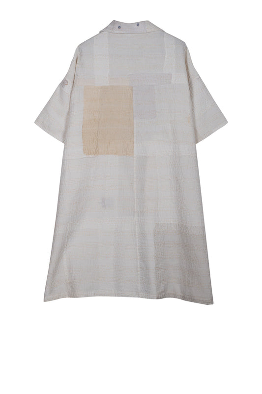 FRAYED PATCH KANTHA HALF SLV. SHIRT DRESS - fi2429-ivy -