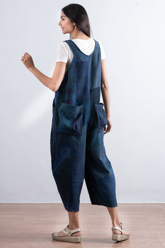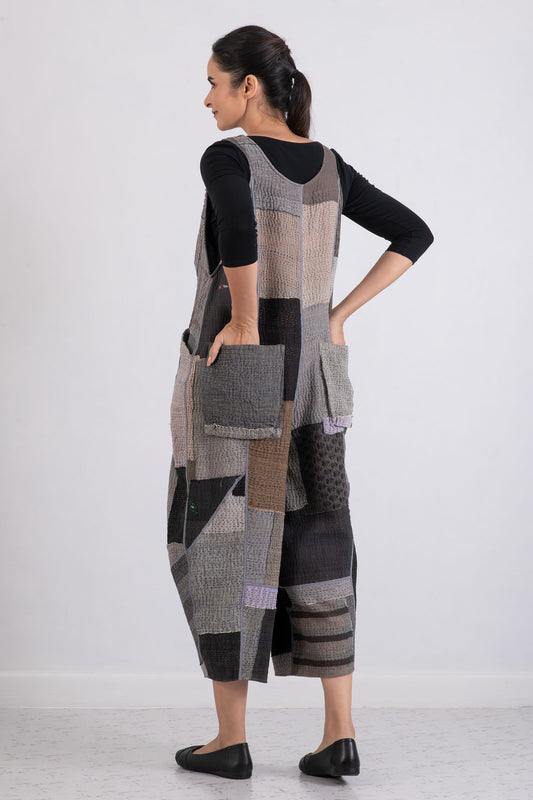 FRAYED PATCH KANTHA TENT DRESS - fi2413-nvy -