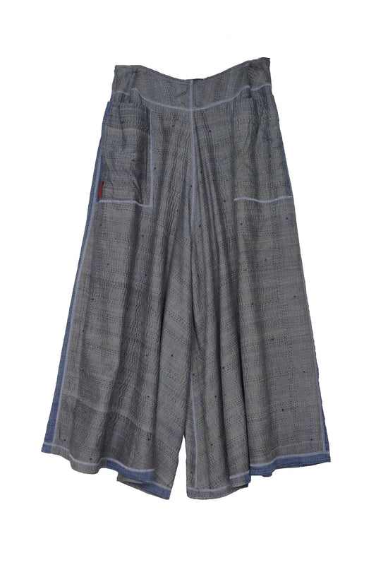 FRAYED PATCH KANTHA WIDE LEG PANTS - fi2623-gry -