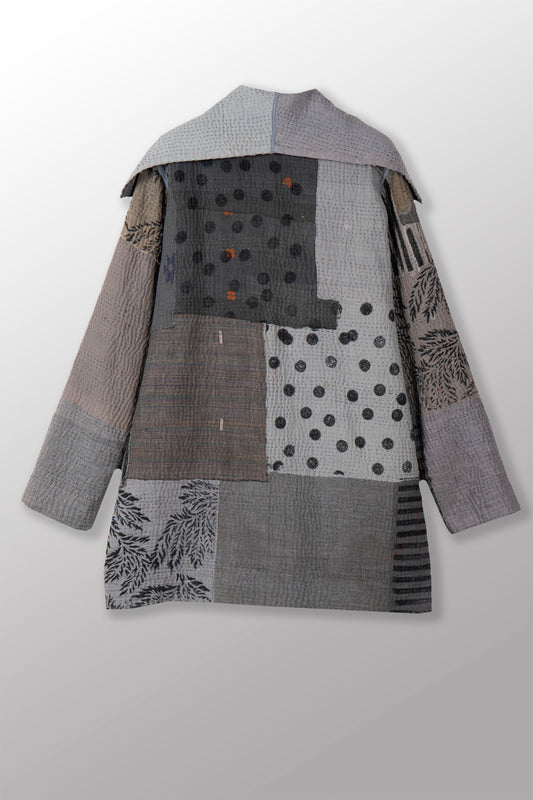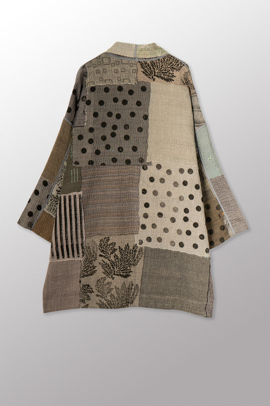 FRAYED PATCH KANTHA WITH STAMP HAORI JACKET - sp-fi4068-gry -