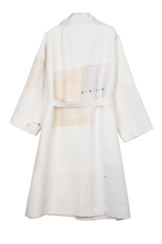 FRAYED PATCH KANTHA SIMPLE ROBE - fi4334-ivy -