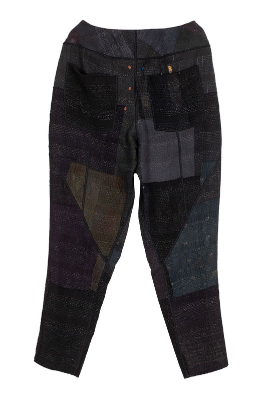 FRAYED PATCH KANTHA SHAPED YAMAHA PANTS - fi4638-blk -