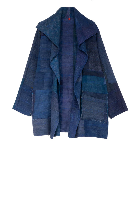 FRAYED PATCH KANTHA SHORT JKT - fi4007-nvy -