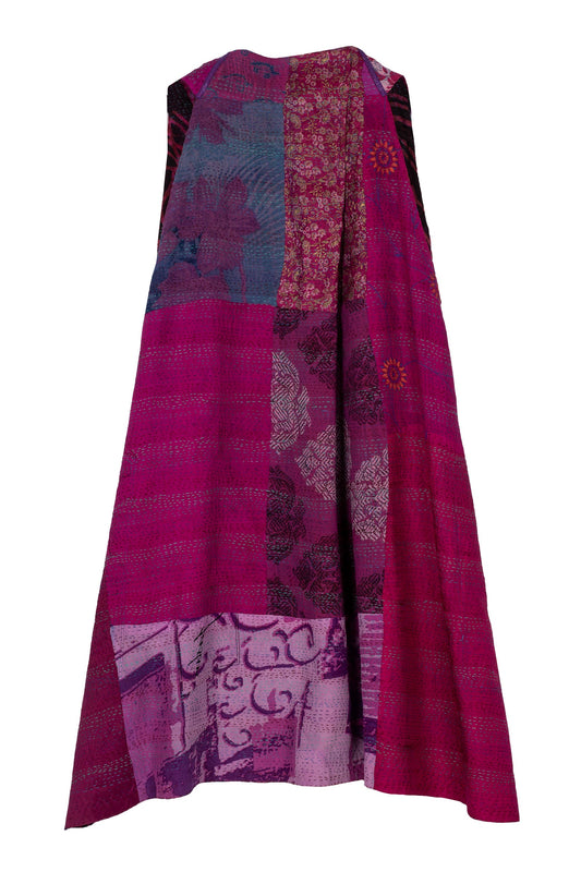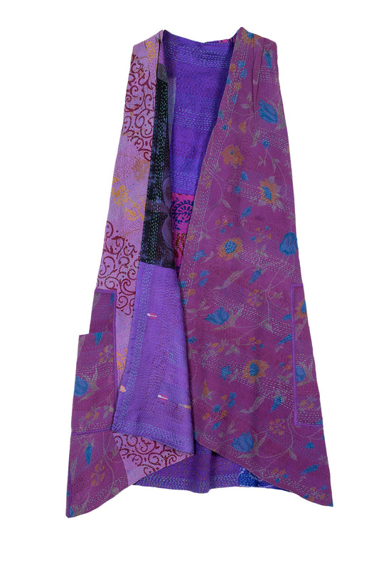 GEORGETTE VINTAGE SILK PATCH KANTHA BACK PLEATED VEST - gs2221-prp -