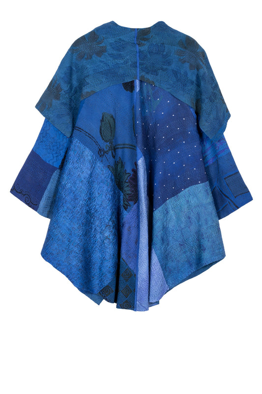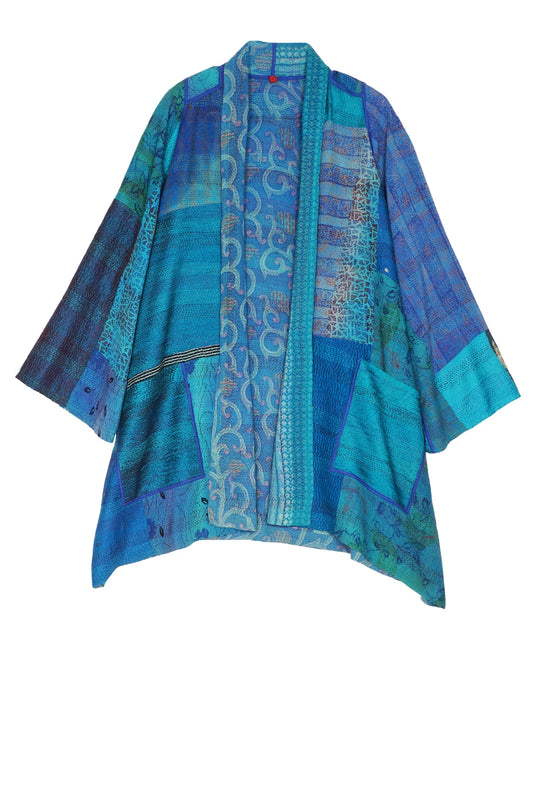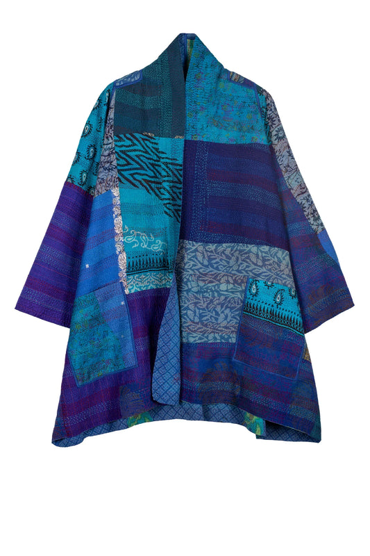 GEORGETTE VINTAGE SILK PATCH KANTHA A-LINE JKT - gs2003-blu -