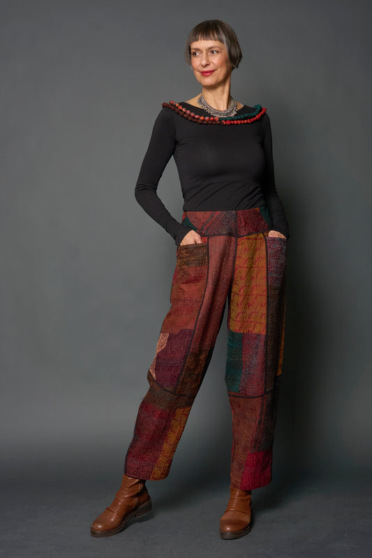 JACQUARD SILK KANTHA PANELED LANTERN PANTS - js4675-brn -