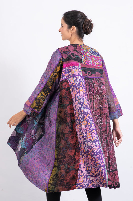 JACQUARD SILK KANTHA WRAP FLARE COAT - js4330-prp -