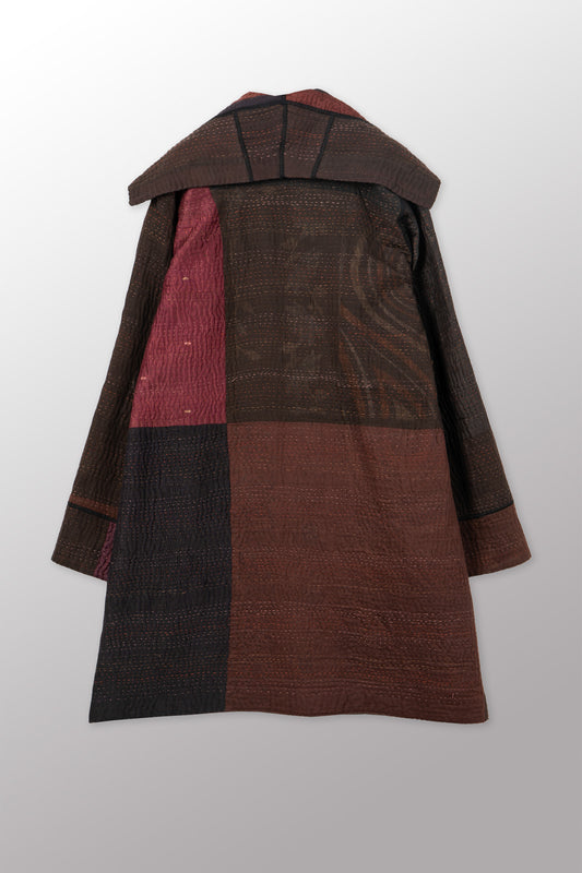 JACQUARD SILK KANTHA POCKET MEDIUM COAT - js4316-brn -