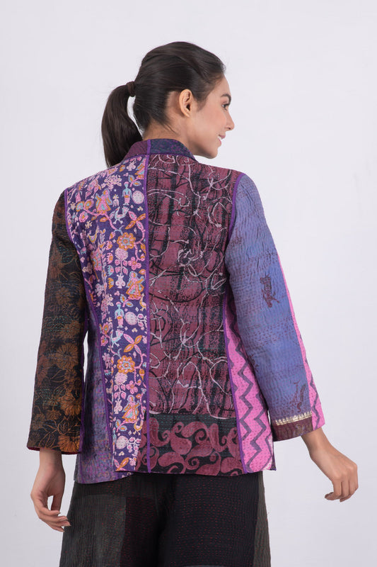 JACQUARD SILK KANTHA SHORT JACKET - js4007-prp -