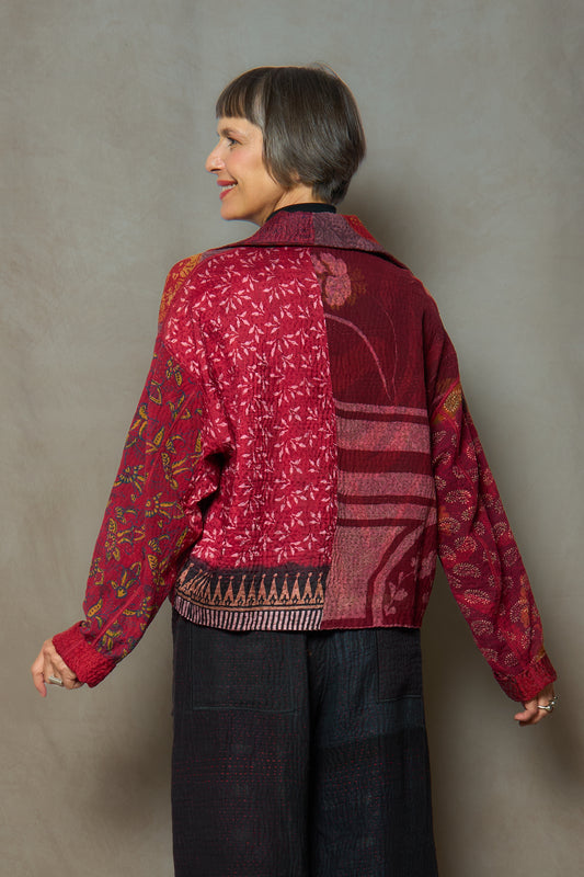 JACQUARD SILK KANTHA MINI PONCHO - js4060-red -