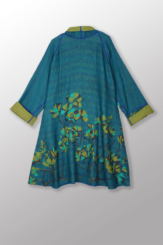 BLOOMING FLOWERS KANTHA OVERSIZED MINI COAT - bf4332-blu -