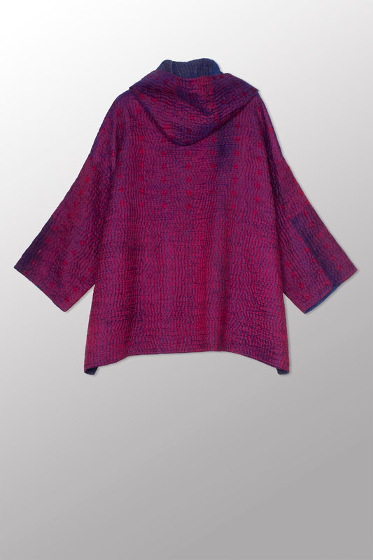 JACQUARD WITH WOVEN KANTHA HOODIE PONCHO - jq5064-0001a -