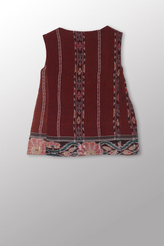 JAIPUR PATCH KANTHA BACK PLEATED VEST - jp4221-red -