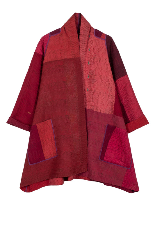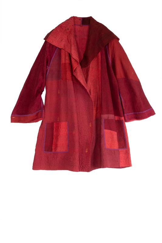 JAIPUR PATCH KANTHA BELL SHAPE LONG JKT - jp4051-red -