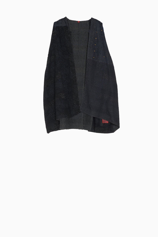 JAIPUR PATCH KANTHA BACK PLEATED VEST SHORT - jp4223-blk -