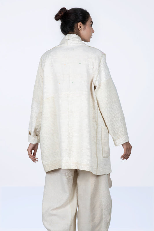 JAIPUR WHITE KANTHA HAORI JACKET - jw4068-ivy -