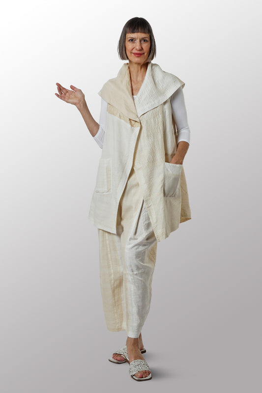 JAIPUR WHITE KANTHA CIRCULAR VEST - jw2201-ivy -